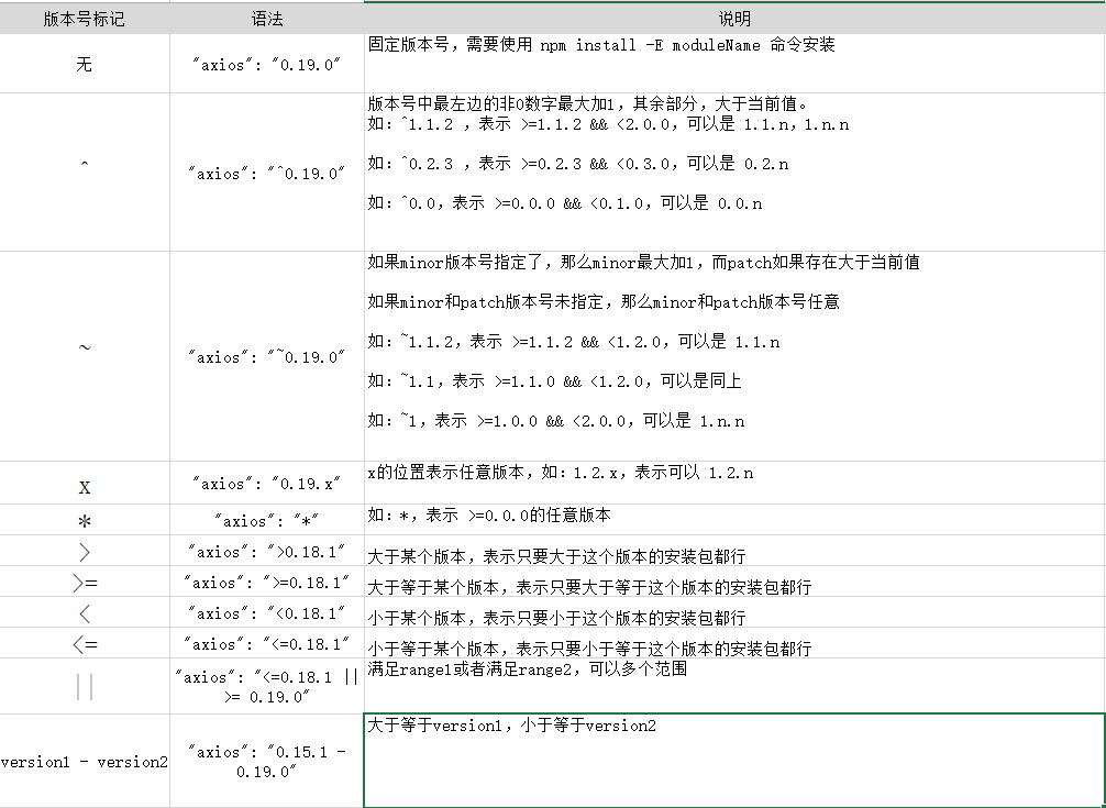默認使用 npm install -save 下載的都是最新版本,同時會在package.json 文件中登記一個最優版本號,如下形式:
