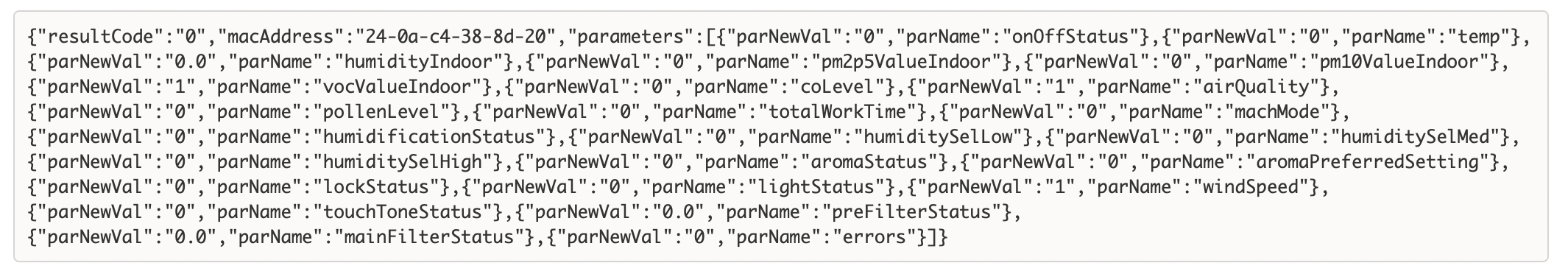 這是一個真實產品的通訊數據,設備端的代碼C代碼中利用cJSON這個開源工具來完成JSON字符的解析和組裝工作。代碼我這裏就不貼了,解析函數很長,要滾動好多次鼠標滑輪。而且一不注意釋放資源就會發生內存泄漏!