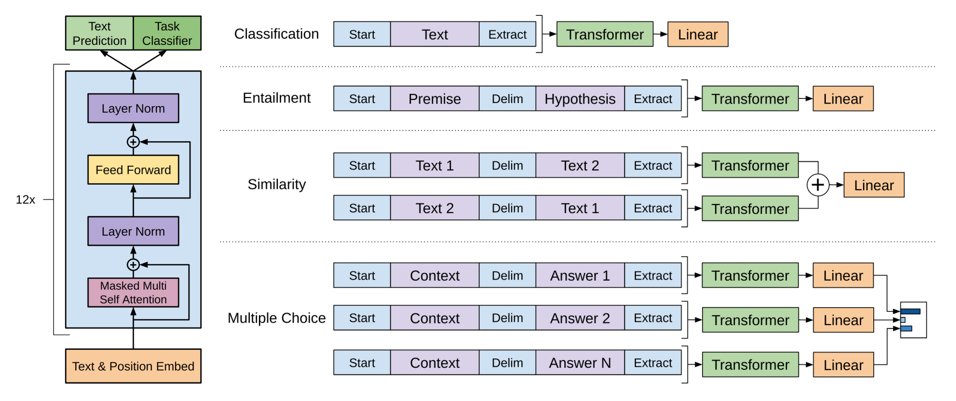 具體的,對於不同的微調任務,我們需要對數據進行如下處理: