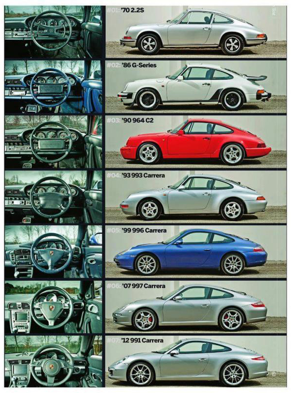 自誕生日起,保時捷至今歷經七代車型,911於1963年以跑車的身份亮相法蘭克福車展。“蛙眼大燈”的前臉設計、COUpE車身造型、後置六缸水平對置發動機、良好的操控性為保時捷911的成功奠定了基礎。在不斷的升級換代中,911又加入了很多的創新系元素,但新一代的911整體設計思路都會傳承911車型的經典元素,所以911每一款成功的車型都會有屬於自己的氣質,它所體現出來的“車魂”是唯一的。