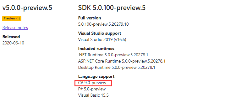 好消息,.NET 5.0 終於在2020年6月10日發布了第五個預覽版,眼尖的同學一定看到了在這個版本中終於支持了 C# 9.0,此處有掌聲,太好了!!!