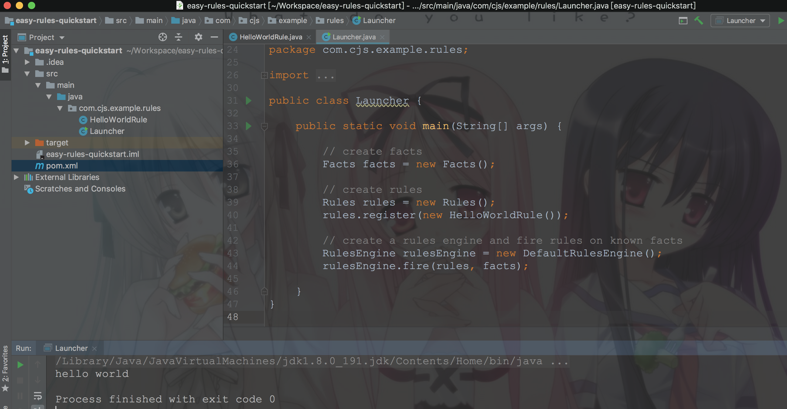 默認給我們生成了一個HelloWorldRule規則,如下: