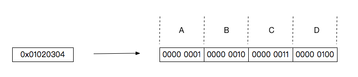假設 0x01020304 是經過前三步計算之後得到的結果,那麼要計算其總共包含多少個1,只需計算A+B+C+D。而ABCD表示的是不同的位區間範圍,不能直接相加,該如何快速計算A+B+C+D的值呢?這裏又用到了移位運算,將B、C、D分別左移8位、16位、24位,使其分別與A對齊: